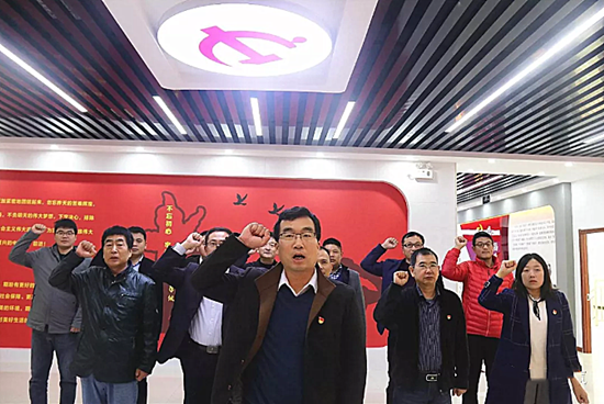 为深入学习贯彻十九届四中全会精神,11月23日下午,山东双合煤矿有限公司举行党员宣誓活动。在神圣庄严的党旗下,全体党员举起右手,握拳过肩,庄严宣誓,党员重温誓词,坚定理想信念,提高党性素质。每位党员都用发自内心的声音抒发对党忠诚的决心,宣誓声激昂有力,响彻会场。