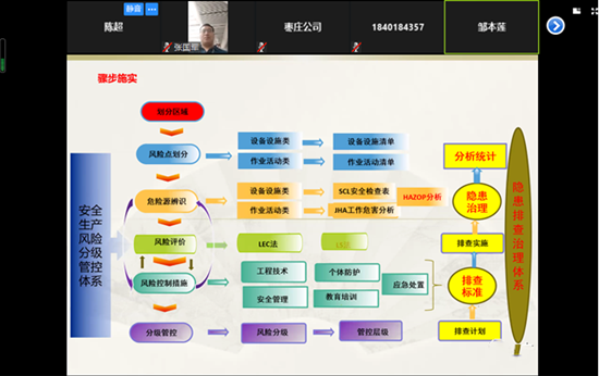 山东省化工研究院研究员,省应急管理厅安全管理专家邹本莲女士对风险分级管控与隐患排查治理体系的由来及国内现阶段各省份建设情况和建设重点进行了详细的讲解。集团公司安全监察部总经理张国军宣讲了风险分级管控机制建立程序及要素,并与各所属公司安全管理人员对现阶段安全管理体系的建设情况进行交流。