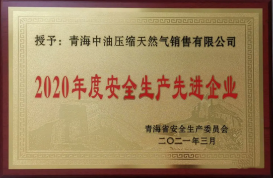 近日,青海省安全生产委员会授予青海压缩公司“2020年度青海省安全生产先进企业”荣誉称号,这也是公司连续6年获此殊荣,同时公司安全风险管控部主任陈连刚获评“2020年度青海省安全生产先进个人”荣誉称号。