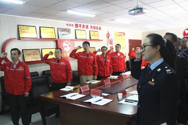 在签约仪式后,双方党员重温了入党誓词,共同观看了党史教育片——《筑梦中国》。