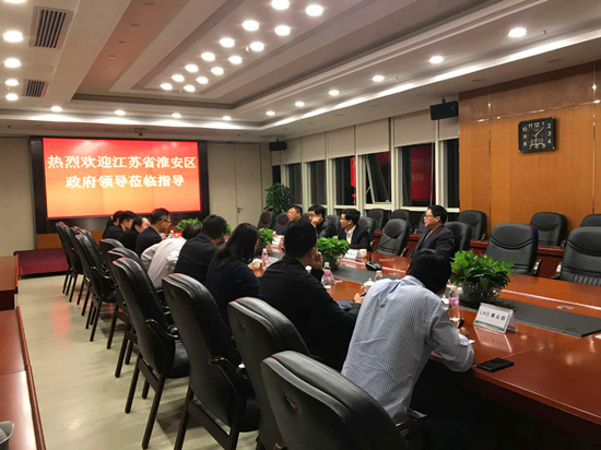 12月6日下午,江苏省淮安区副区长李晓旭、区住建局局长王建法、区政府办副主任王金宝、区住建局副局长王卫东一行到访集团,集团总裁高发连、副总裁王乐天、姜兆巍、孟宪莹及淮安公司、总部相关领导一同参与接待、座谈。