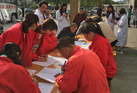 上午7点,南通公司员工就早早地来到了卫生服务站。在工作人员的引导下,参加献血的员工仔细填写血站提供的献血登记表,抽取血液样本检查,录入个人信息,在所有条件均满足要求的前提下,抽取血液。不管是体检还是采血,大家都有序地排着队伍,有说有笑的,一方面是为了减轻献血前的紧张心理而互相鼓励,另一方面更是为自己的无偿献血行为感到自豪。
