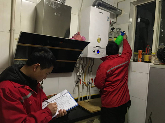 在安检时,针对居民家中常见的安全隐患进行了一一排查,具体有管道是否漏气、阀门是否完好、管道管件表具是否锈蚀、是否有偷盗气行为、管道是否被包裹、软管是否老化超长穿墙、是否安装管卡、壁挂炉热水器是否私装、壁挂炉热水器是否为直排型、报警器是否接电、电磁阀是否联动、燃气室是否住人、灶具是否有熄火保护等。并依据检查情况分别填写:安全检查表、隐患通知单、张贴安检标贴,记录用户的灶具年限及表具型号、编号、表向、表底数等内容。在此期间,安检人员还要为用户讲解安全用气常识,并为存在问题的用户进行当场维修、维护等工作。