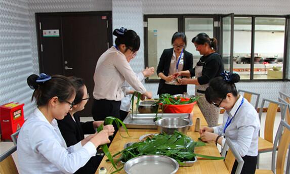 新沂中油公司食堂内不时传来阵阵笑声,浸泡好的糯米、新鲜的芦叶,还有一双双跃跃欲试的手,没错,这里正在举行“包粽子,庆端午”活动。许多员工都是第一次包粽子,充满了新奇,有经验的手把手的教没经验的。可包粽子可是个技术活儿,不是一朝一夕能学会的,可想而知,包出来的粽子千奇百状,形状各异,甚至有的糯米都洒出来了,估计下水后会变成芦叶粥的。