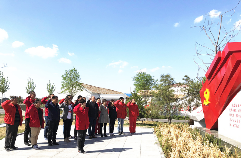 参观完纪念祠,全体党员在党支部书记的带领下,举起右手,重温了入党誓词,在鲜艳的党旗前进行了庄严宣誓。
