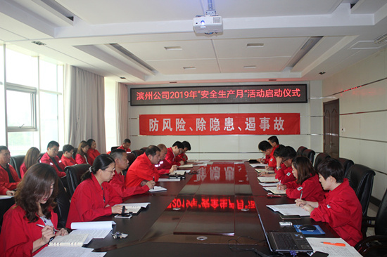 为贯彻落实国家、省、市、区和集团公司关于组织开展全员第18个“安全生产月”活动的通知要求,6月3日,滨州公司在三楼会议室组织开展了2019年“安全生产月”活动启动仪式,部署安全生产相关工作。公司总经理马良出席会议并作了动员讲话,公司常务副总经理魏丽清、公司副总经理黄瑞、公司财务总监卢岩,以及集团公司东部区域安全督导专员倪友伟等出席启动仪式。