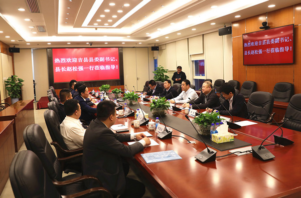 许铁良主席简要介绍了集团事业发展情况,表示十分看好吉县的发展前景和投资环境,对集团在驻地产业布局和长远发展很有信心;赵松强副书记介绍了吉县的基本县情和经济社会发展状况,以及吉县未来宏大的发展计划和美好的蓝图,指出吉县脱贫攻坚取得重大成果,目前正走在乡村振兴路上,将进一步优化投资环境,为企业在当地发展提供助力和保障。会谈结束后,宾主共同出席吉县集聚区特许经营签约仪式。