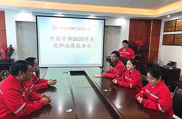 1月30日上午,芮城中油燃气有限公司召开了2020年度中层管理干部述职述廉报告会。总经理李向前、常务副总经理李志宏、财务总监周小南等经营班子成员及各部门负责人参加了会议。会议由李向前总经理主持。