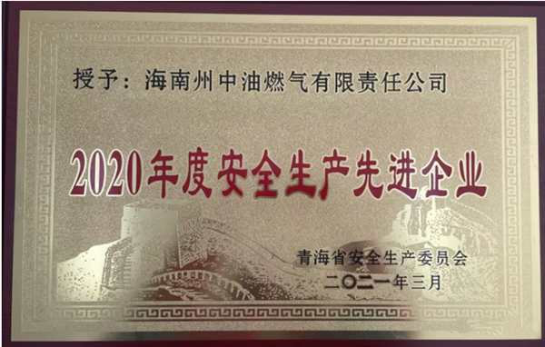 2020年,海南州中油燃气有限责任公司在上级政府主管单位及集团公司的正确领导下,紧紧围绕“安全第一、预防为主、综合治理”的安全生产方针,着力提升公司安全管理水平,不断夯实安全生产基础,严守安全底线,推进“一岗双责”“三个必须”安全工作,经省安委会考核,被青海省安全生产委员会授予“2020年度安全生产先进企业”荣誉称号。