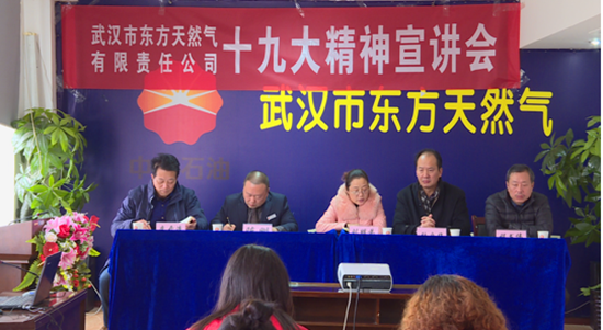 12月1日上,武汉市东方天然气有限责任公司党支部组织全体党员、中层管理人员及积极分子参加学习贯彻党的十九大精神专题宣讲会,邀请区总工会刘明芬主任及区委党校张启华老师全面宣讲十九大会议精神。