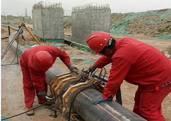 不同于其他城市的综合管廊,西宁市的天然气管道廊体采用的是“挂耳舱”的方式,不规则角度、坡度很多,而且是与管廊主体同时施工,存在交叉作业,这就对燃气管道施工增加了很多难度,但这些都阻挡不了“专业化机组”施工的脚步。作业中心从聚乙管道的材料特性出发,依托于多年的PE焊接施工经验,在施工的过程中开发出许多新的焊接辅助方式,从而很好的克服了诸多难题,保证了管廊工程的顺利进行,也为今后的工作积累了宝贵的经验。