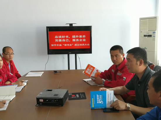 邹平公司成立读书会旨在汲取各种知识,提高综合能力,陶冶高尚情操,享受学习乐趣,营造一个相互交流和沟通的学习氛围,使公司管理人员在知识积累、营造氛围和团队建设三个方面得到提高。会上宣读了邹平公司2018年度读书书目,确定了读书活动的实施方案。