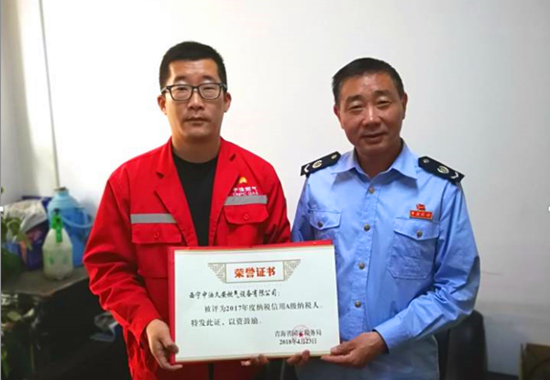 5月23日,青海省国家税务局发布2017年度纳税信用A级纳税人名单,西宁中油久安燃气设备有限公司荣登榜单。获得“A级纳税人”称号的企业在项目审批、税收服务、财政资金使用、社会保障、土地使用、融资授信等领域实施守信联合激励措施,提升了A级纳税信用的社会价值。