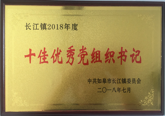 南通公司谭彦获长江镇“十佳优秀党组织书记”称号