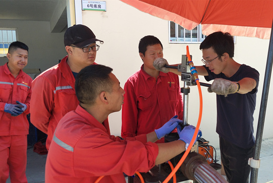 在培训中,厂家技术人员对参加培训人员现场进行手把手指导。从设备的构造到工艺原理,从拆卸步骤到发现问题故障排除,全面细致、一丝不苟的进行讲解。把复杂的不停输带压开孔设备讲解的透明化、程序化、简单化,大大提高了参加培训人员的技能水平。