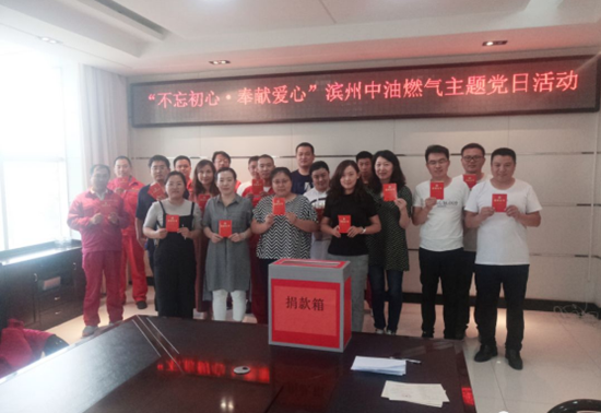 在中华慈善日来临之际,为突出党员在参与慈善、奉献爱心中发挥先锋模范作用,9月17日,滨州中油燃气有限责任公司积极响应经济技术开发区党群工作部的号召,组织28名党员开展了“不忘初心.奉献爱心”主题党日活动,现场捐款1700元。